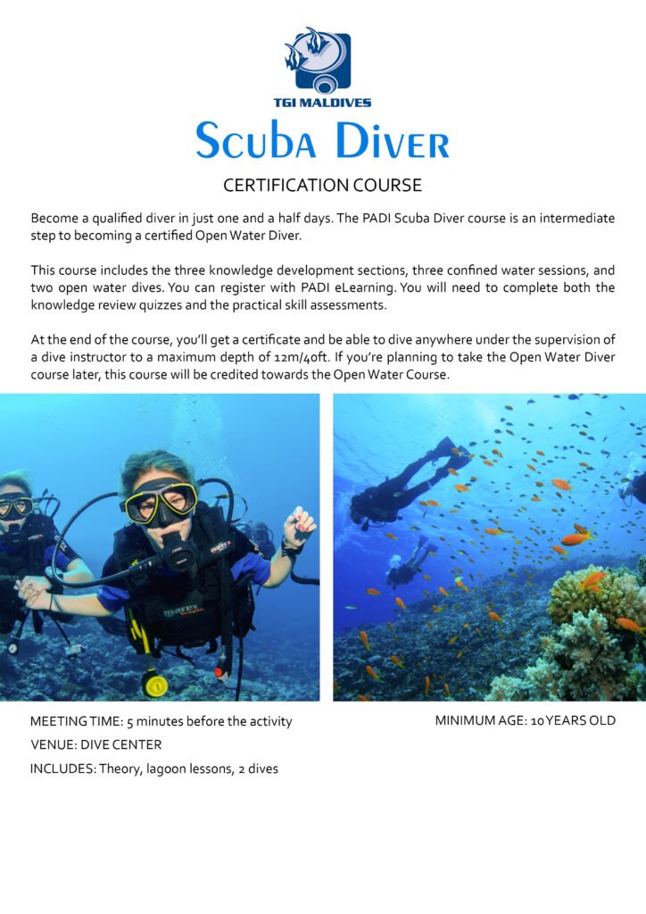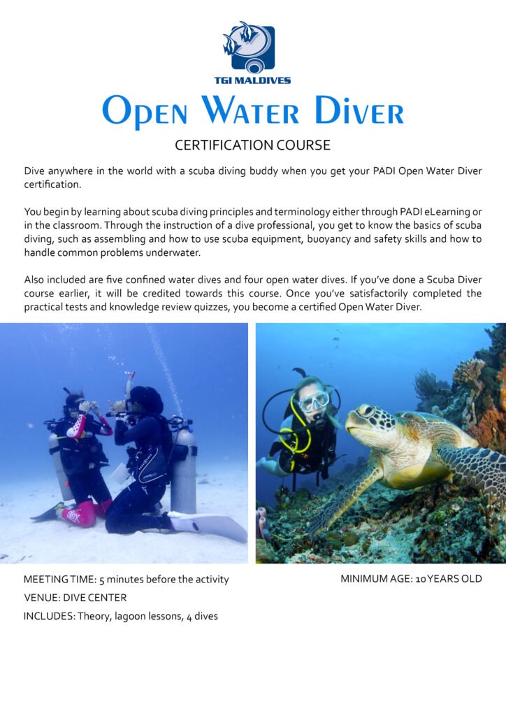 Price includes educational materials, certification, full scuba equipment and all required dives